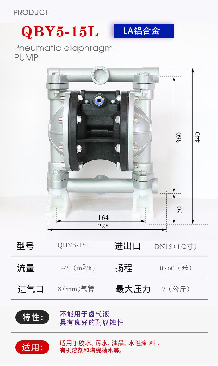 QBY5-15L型鋁合金氣動(dòng)隔膜泵