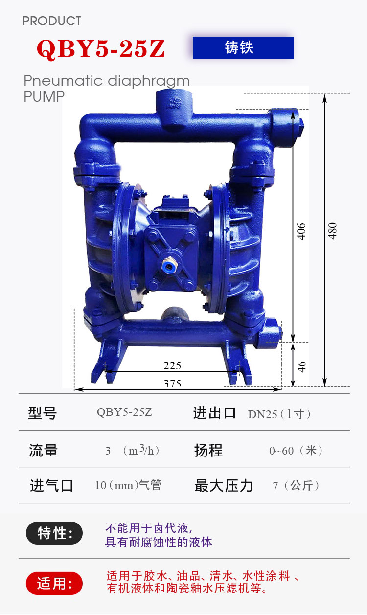 QBY5-25Z型鑄鐵氣動隔膜泵