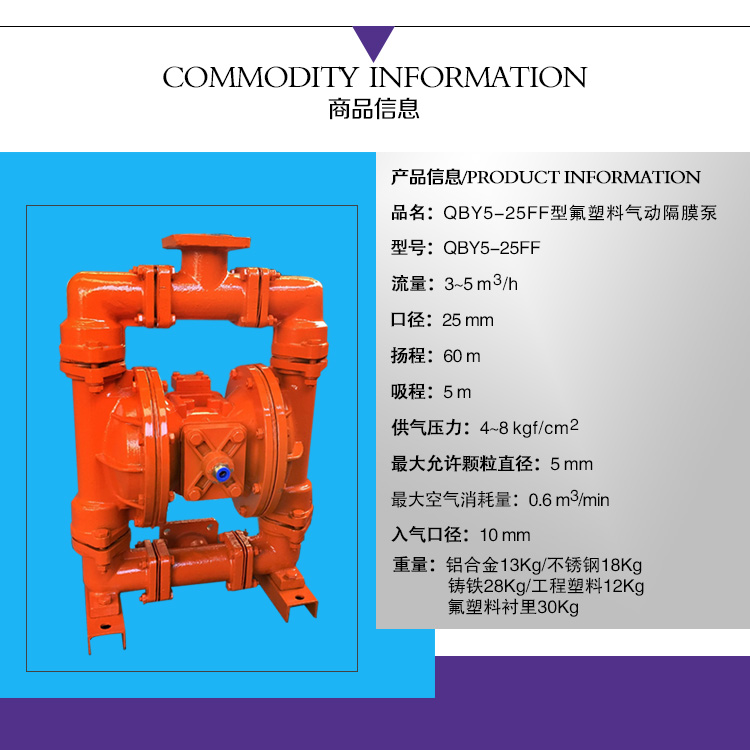 QBY5-25FF46氟塑料襯里氣動隔膜泵